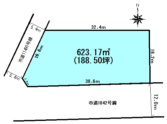 | 接道 | 南 12m(幅員) 公道 38.6m(接面) 西 5.4m(幅員) 公道 16.6m(接面) |