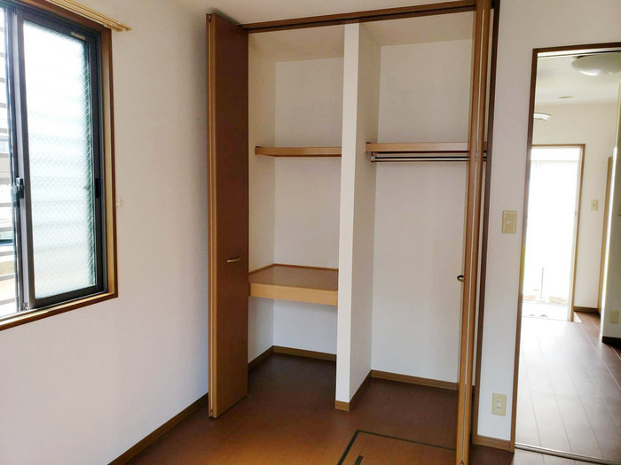 バストイレ別、ガスキッチン、室内洗濯機置場、エアコン2台、収納、洋室、バルコニー、モニター付きインターホン、温水洗浄便座、シャッター雨戸、洗髪洗面化粧台、シューズボックス、駐車場、インターネット対応、インターネット無料、宅配ボックス、床下収納、角部屋、フローリング、BS